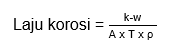 Setelah waktu korosi tercapai, dilakukan pembersihan sampel baja dengan menggunakan pelarut aseton dengan cara merendam baja, kemudian baja dikeringkan pada suhu ruang selama 24 jam dan ditimbang sebagai massa akhir. Massa yang hilang digunakan untuk menghitung laju korosi. Berdasarkan selisih massa yang diperoleh maka dilakukan analisa data menggunakan persamaan matematis berdasarkan standar ASTM G31-72 tentang uji laju korosi laboratorium yaitu sebagai berikut (ASTM, 2004).