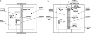 Skema alat guarded dan calibrated hot box method (HB_M) yang digunakan untuk mengukur kinerja isolasi termal suatu material bangunan secara akurat (Lisowski & Glinicki, 2025).