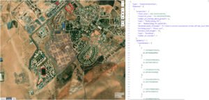 Bentuk kawasan perkotaan yang dihasilkan dan dipetakan pada wilayah geografisnya menggunakan platform GeoJSON, lengkap dengan data koordinat dan atribut bangunan (Er-Retby, dkk. 2025).