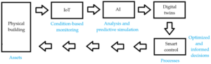 Integrasi teknologi dalam manajemen bangunan cerdas (Rojek, dkk. 2025).