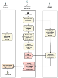 Diagram Aktivitas UML yang menggambarkan integrasi layanan analitik dengan platform yang sesuai dengan SGAM (Janev, dkk. 2025).